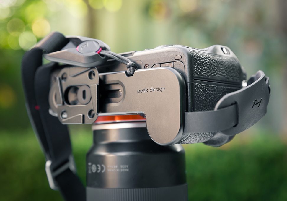 Attaches to your camera at 2 points: your camera strap mount (via a reinforced Hypalon loop) and your camera tripod mount (via our low-profile Arca-compatible Standard Plate).
