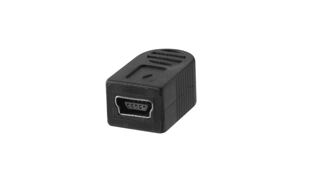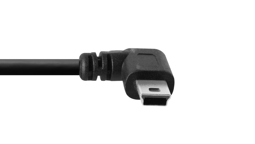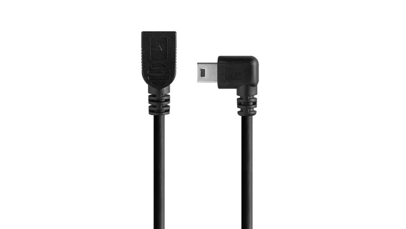 The 1′ (30cm) left angle adapter connects to the camera using a 5-pin mini-B connector.