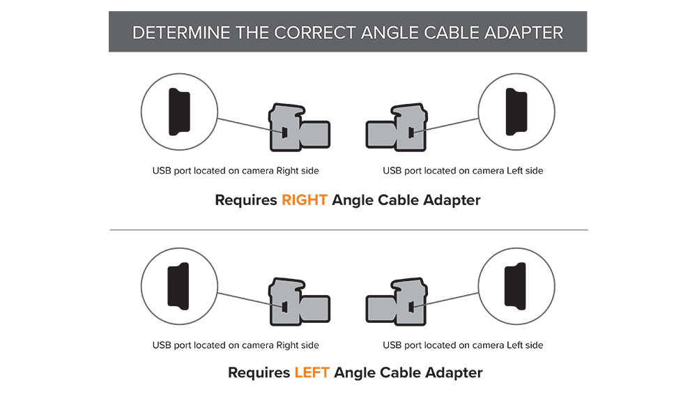 The angled adapters are also available as a right angle so inspect your camera port to ensure the cable plug is going in the correct direction for your needs.