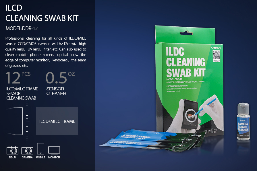 The VSGO ILDC Cleaning Swab Kit is specially designed for professional cleaning of the sensor of your camera system. This kit contains 12 sensor swabs of 12 mm and a vial with 15ml sensor cleaning liquid. The cleaning fluid is non-toxic, environmentally friendly and has an excellent cleaning ability. This kit is ideal for use on location or traveling.