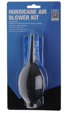 The VSGO Hurricane Air Blower Kit consists of a powerful dust bellows for keeping your equipment, a sensor swab for cleaning a 16mm APS-C sensor and a cleaning cloth. With this complete set will keep you in a simple way your lenses, filters and camera free from dust and dirt. This set can also be used for cleaning such as your personal computer, keyboard or piano.