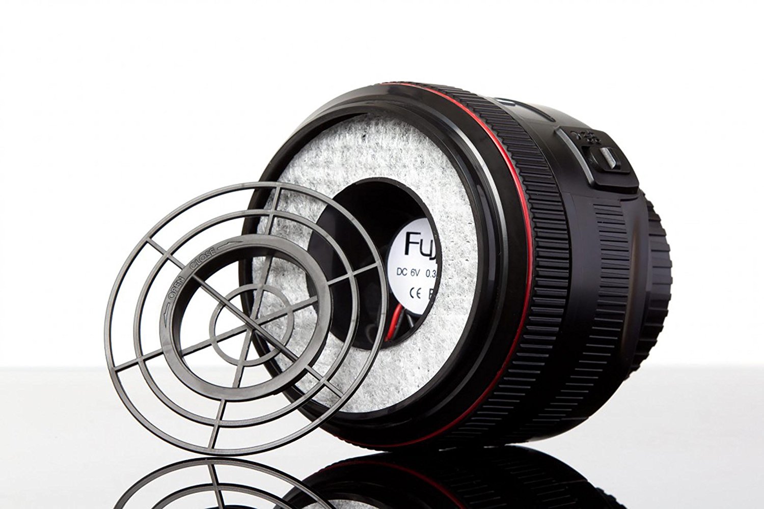 Filtered air is sucked in from the outside, cleans the inner camera housing and is ejected again.