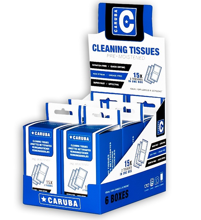 Those Caruba Cleaning Tissues are mutlifunctional cleaning cloths; ideal for a streak-free and grease-free cleaning of your camera lens or other equipment. The cloths are also suitable for (sun)glasses, mirrors and monitors! Caruba cleaning tissues are pre-moistened with a special liquid, which removes grease and stains effortlessly! Do not use on LCD or Plasma screens.