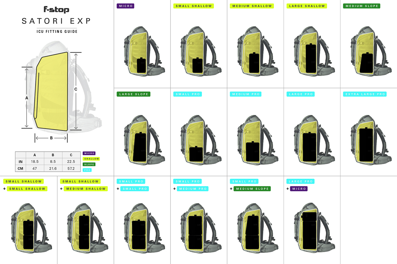 The F-Stop Satori EXP v2 is a perfect bag for when you go on an expedition. Ideal when many devices you need to wear to a base camp or a distant location and great for long trips where you do not want concessions in terms of materials. The optional ICUs are mutually to combine with the Satori EXP v2. Use a small ICU if you have little space need for your photo or video equipment and want to have more space for other things or use an extra ICU if you really want to be sure that all your equipment is properly stowed. The ICUs can be found in the "Accessories" tab.