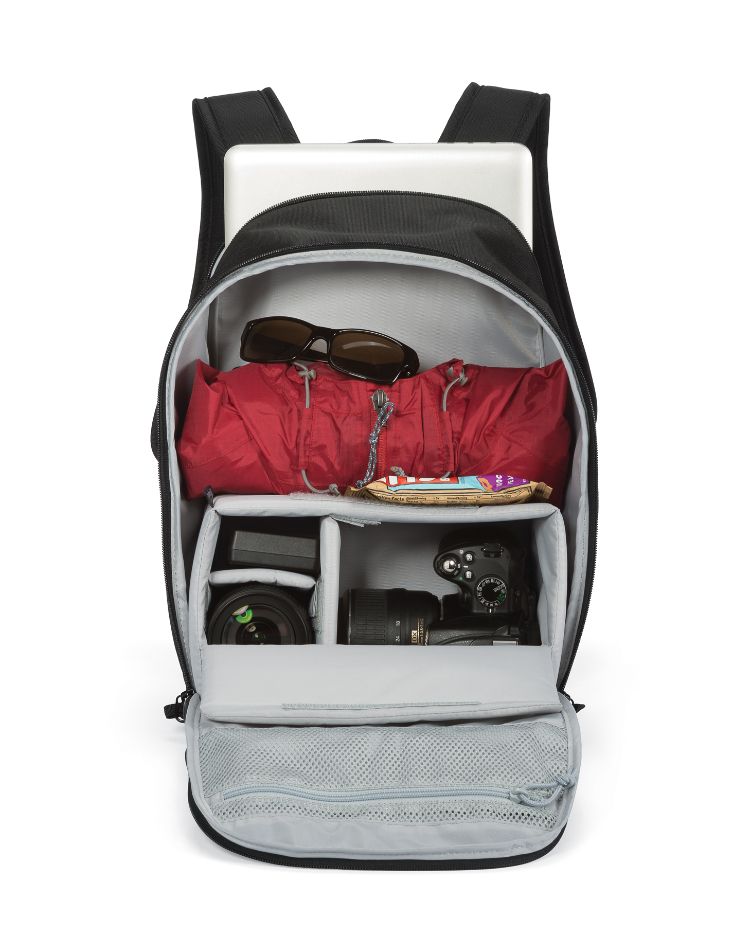 Capacity: Systematic or compact DSLR camera; an additional lens or flash; up to 13 "laptop, smartphone, personal belongings