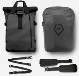 The Travel Bundle consists of the bag with two extra straps, a hip belt and a rain cover. You use the extra straps for different purposes, such as tying your tripod or jacket to the bag or converting the Prvke into a standing workstation. The hip belt offers extra comfort and eases the shoulder load of the backpack. The rain cover protects your backpack against heavy rain showers.