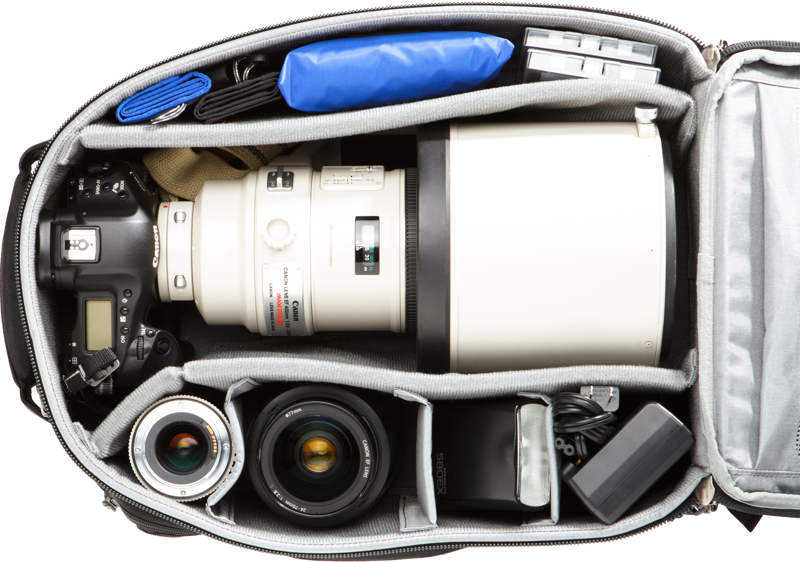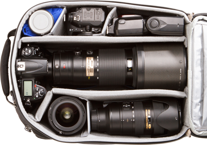 Carry-on backpack which fits most overhead compartments, holds up to a 400mm f/2.8