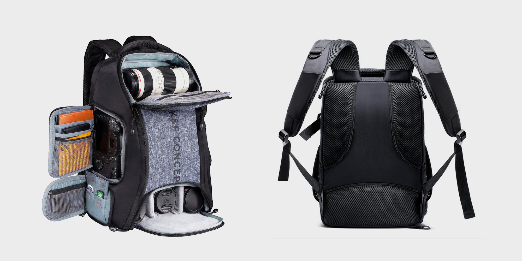 Your camera gear deserves the best protection, and the K&F Concept Camera Backpack provides it in every situation. Made of durable material and equipped with a rain cover, the backpack guarantees the safety of your equipment even in very harsh weather conditions. Whether you’re on a wedding shoot, traveling, or creating a vlog outdoors, you can rest assured that your equipment will be properly protected.
