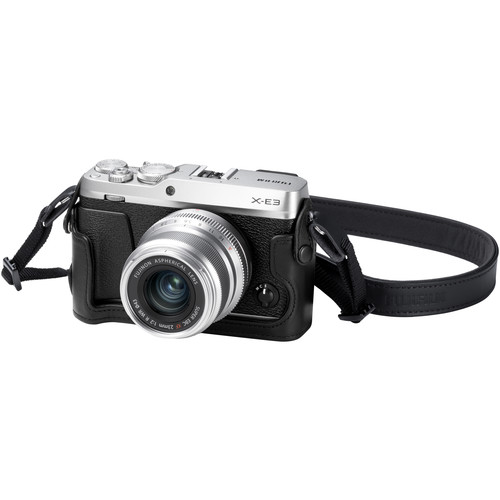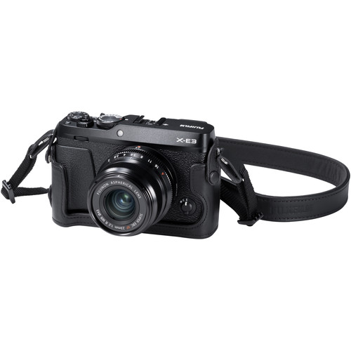 Dedicated to the Fujifilm X-E3 mirrorless camera, the BLC-XE3 Bottom Leather Case helps to protect your camera body while maintaining full camera functionality. It connects to the bottom of the camera, permits use of a tripod while attached, and retains access to the battery compartment. A matching leather shoulder strap is also included, as well as a protective cloth.