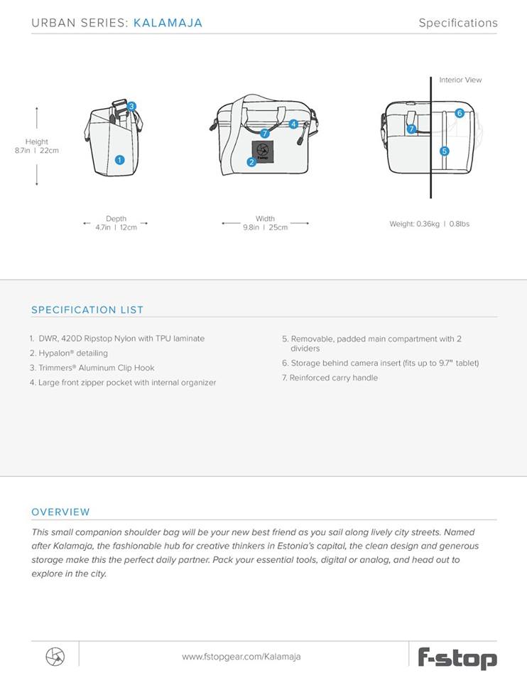 The F-Stop Kalamaja shoulder bag is a lightweight but sturdy camera. The Kalamaja is suitable for a compact camera and accessories or a system camera with a lens or flash. In a separate compartment can you lose a 11 inch tablet.