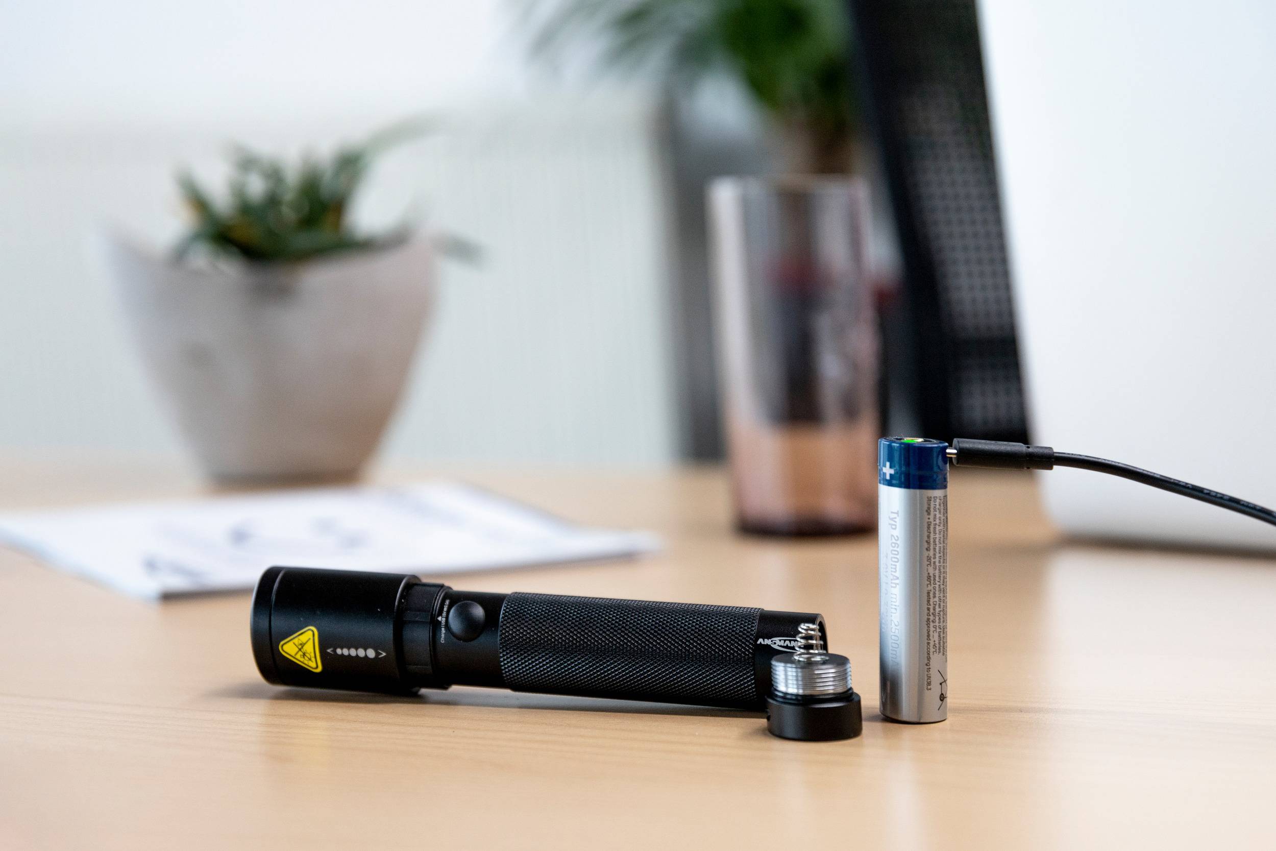 High quality ANSMANN Lithium battery 18650 with Safety Board and integrated Micro-USB charging socket. The charging current is limited internally to max. 1A.