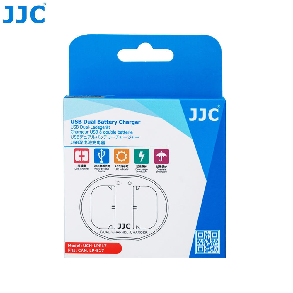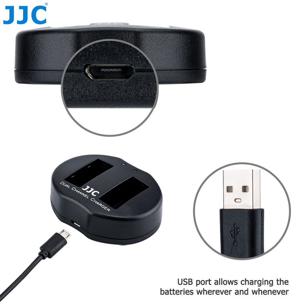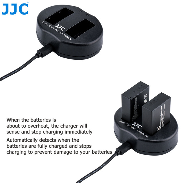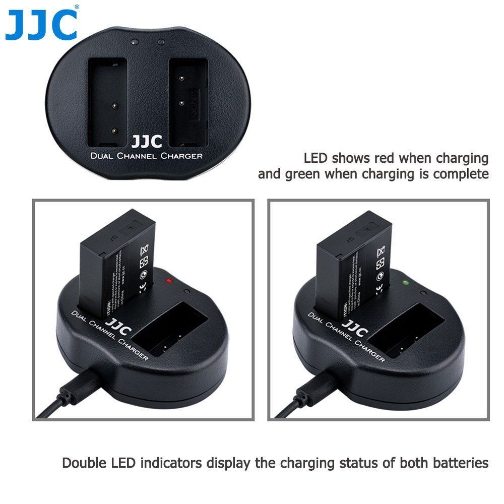 JJC UCH series USB Dual Battery Charger allows you to charge 2 batteries at the same time. Powered by USB sources, you can charge your battery with AC adapter, laptop, power bank or car charger, which enables you to refresh your battery wherever and whenever. The 2 indicator lamps display the status of the battery. LED shows red when charging and green when charging is complete. Moreover, when the battery is about to overheat, the charger will sense and stop charging immediately. Besides that, the charger will automatically detect when the batteries are fully charged and stop charging to prevent damage to your batteries.