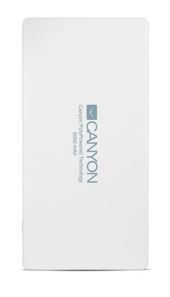External Battery»CANYON»Power bank 5000mAh (Color: White), bulit in Lithium Polymer Battery»(new)