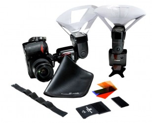 Description: The Wedding/Event Kit includes a Quik Bounce which is ideal for weddings and events, the Fxtra, a nine piece colored gel kit and an UltraStrap, the most secure non adhesive mounting strap in the industry, all in a convenient storage wallet.