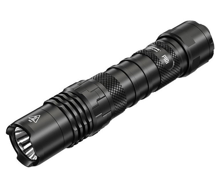 The Strobe Ready button allows quick switching between the 3 brightness levels and the strobe mode. The range of 290 metres is also impressive. The included battery holder allows the use of 2 CR123A lithium batteries. The Nitecore P10i is similar to the P20i but has a slim lamp head.