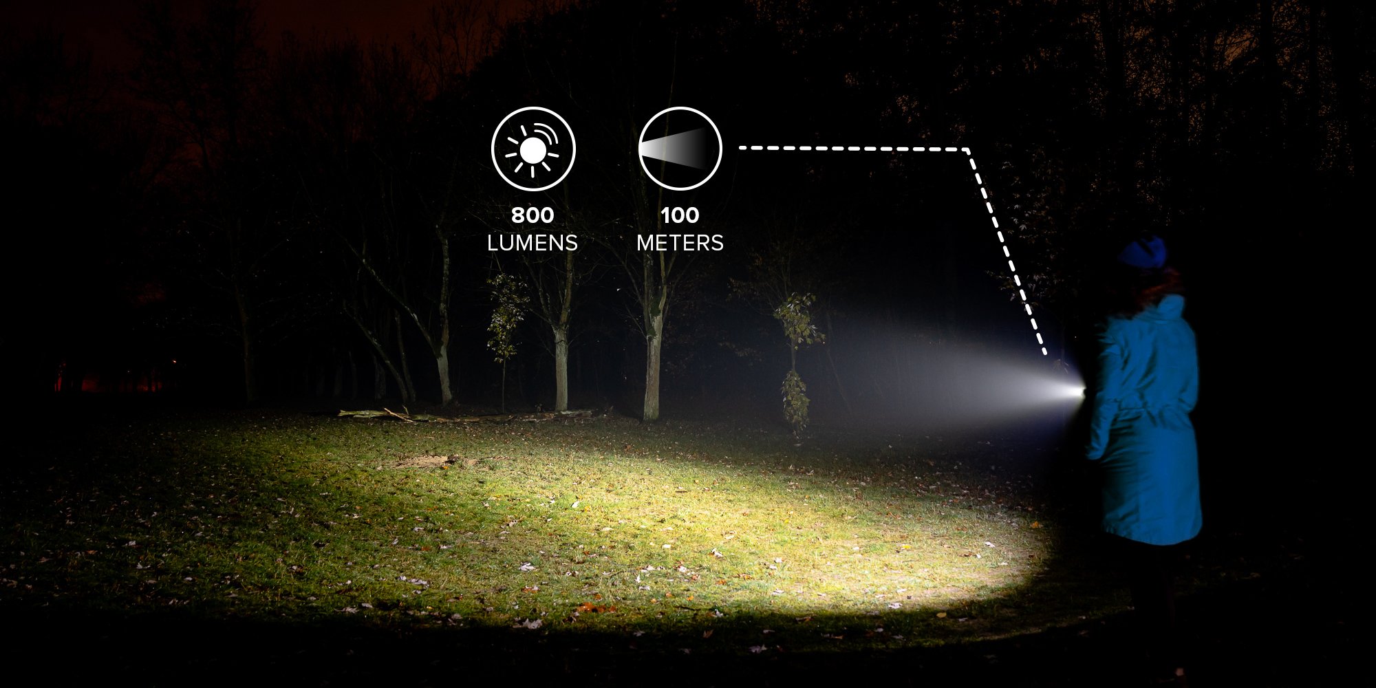 up to 100m light beam range