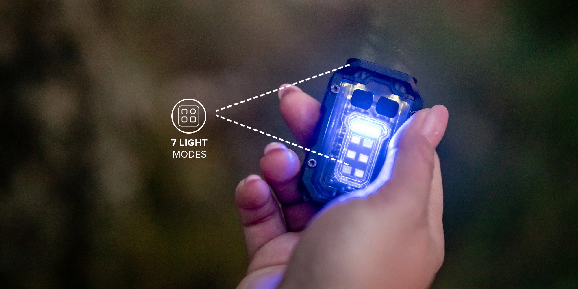 An additional light source that the Newell EDC Nyks Solid flashlight is equipped with is a side LED panel. Among other things, it allows you to emit classic white light. When you choose this mode, the device can be used as an effective work lamp. The evenly dispersed light is great for precision repair work, reading or DIY; anywhere where access to light is limited.