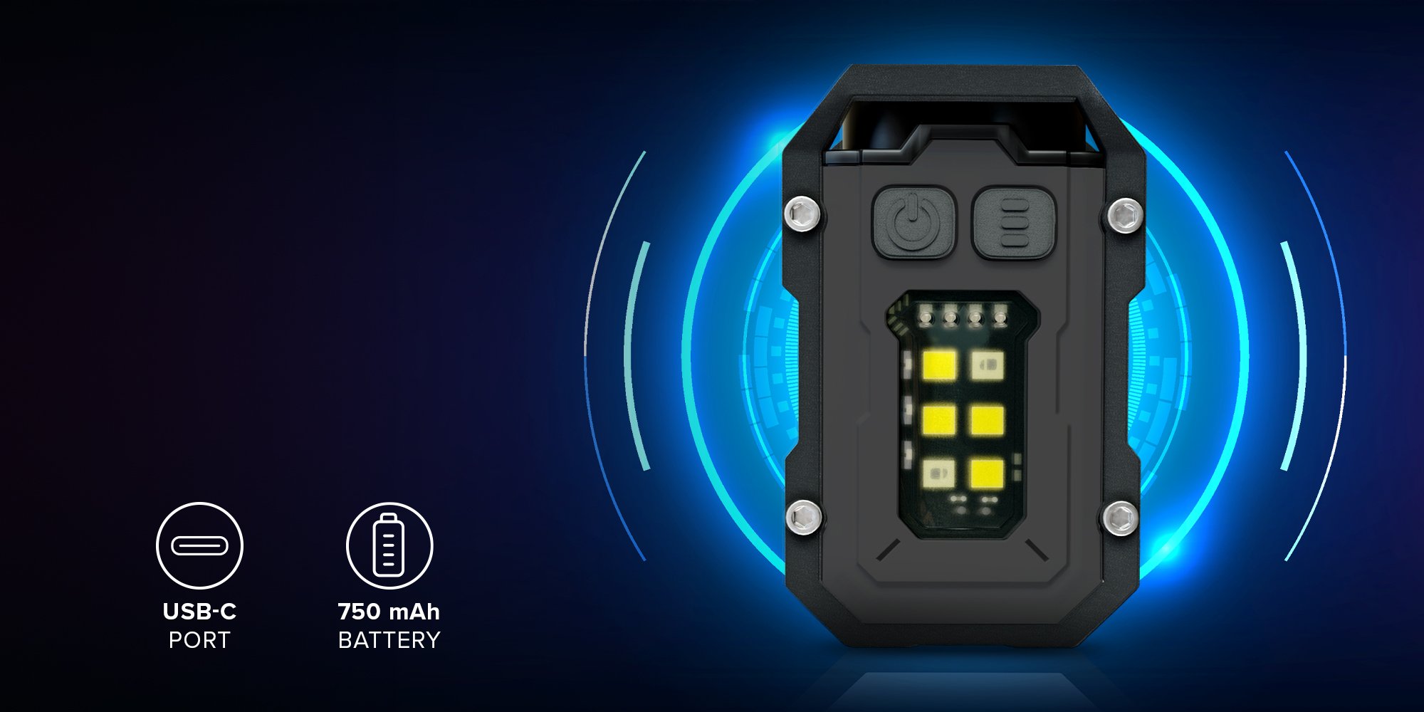 The two LED modules on top of the Newell EDC Nyks Solid flashlight can operate together or separately. In total, there are 4 different modes of operation to choose from: