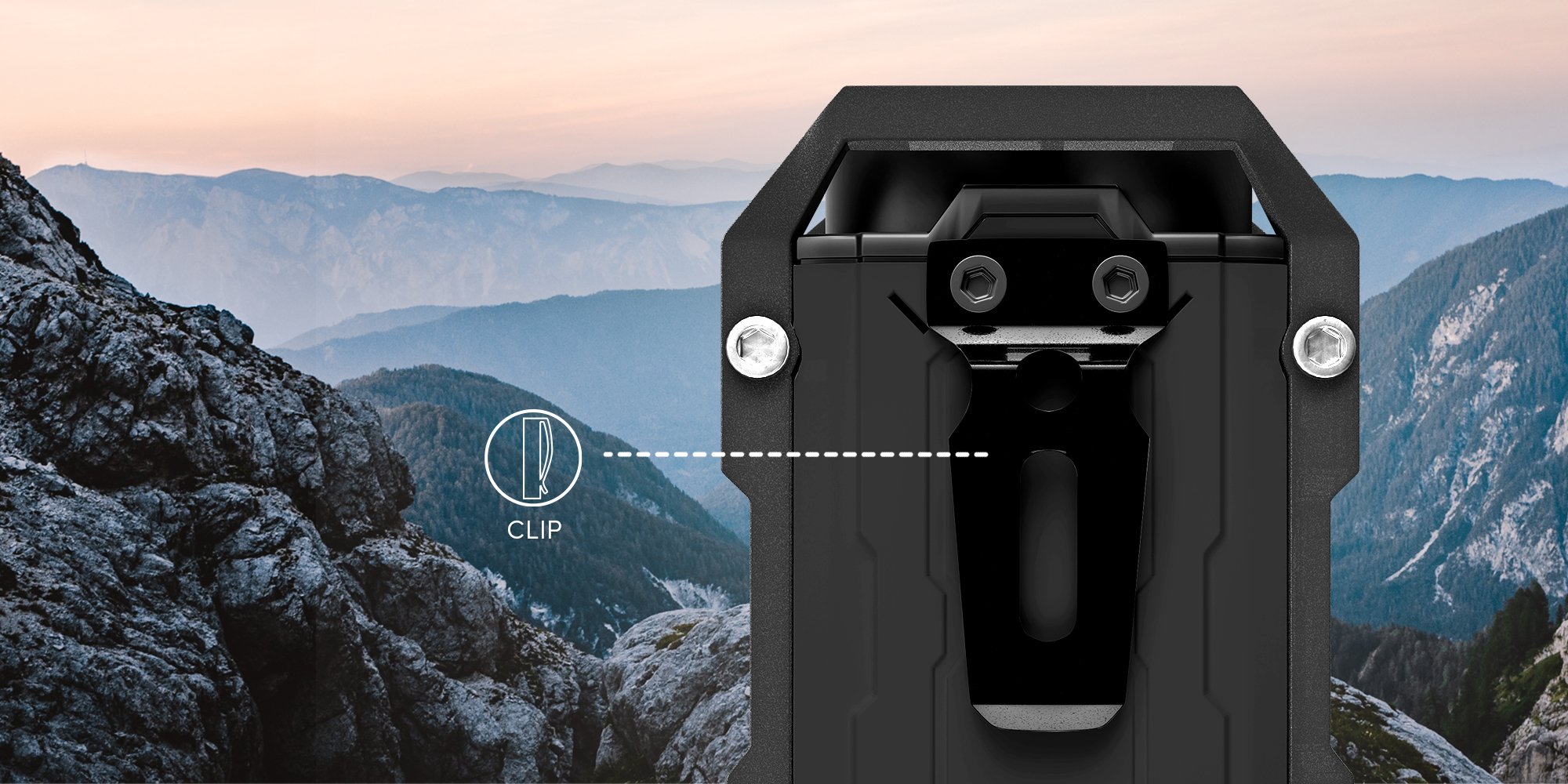 clip for easy mounting to a belt or backpack