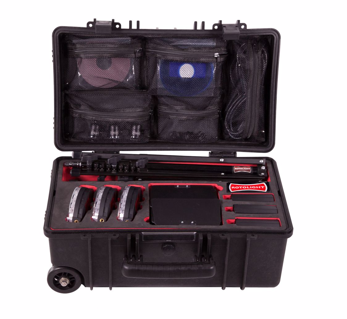 The Rotolight NEO Hard flight case is a highly portable, robust, IP67 rated watertight case that can hold 3 x Rotolight NEO’s, compact lighting stands, barn doors, power adapters, filters, ball heads, barn doors and other accessories. Available as standard with the Rotolight NEO 3 Light kit, this injection-molded impact-resistant case includes wheels and retractable handle, ideal for airline travel.