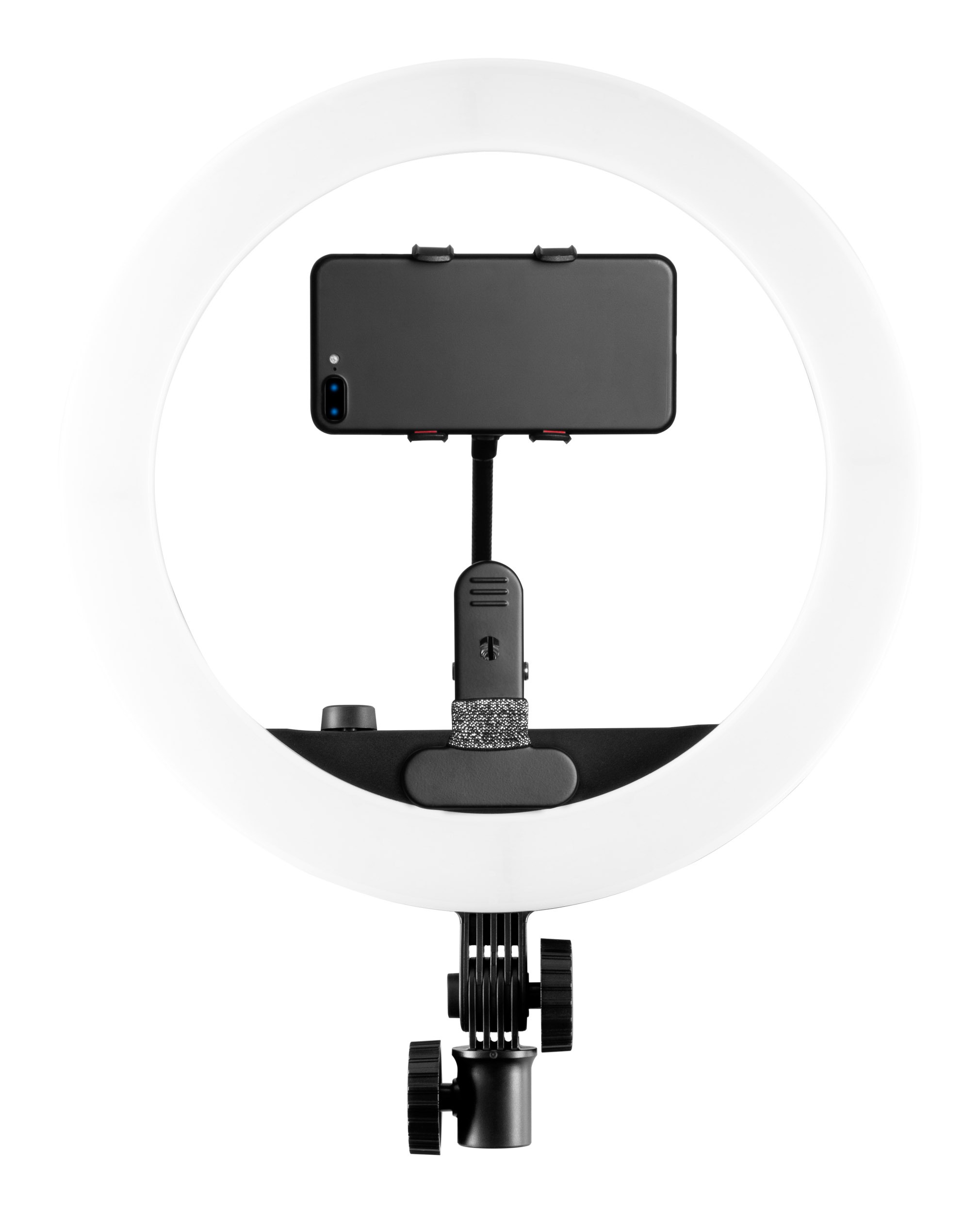 Compatibility with almost any lighting tripod is provided by a standard 16mm lamp shank. Additionally, a flexible arm with a smartphone holder is included.
