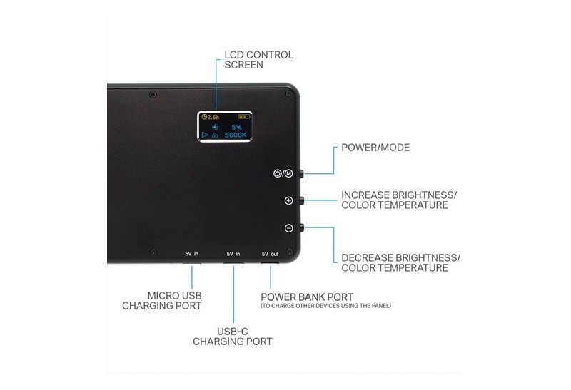 Lume Cube's first Bi-Color LED, made for the videographers and photographers who move quickly and need their lighting to adapt to any shooting condition. Featuring an intuitive LCD screen on back, The Panel not only allows you to adjust color temperature and brightness, but gives you immediate feedback on how long the LED will last at each brightness setting. Designed with a sleek and compact design, the PANEL will not only look great on-camera, but takes up minimal space in your gear bag.