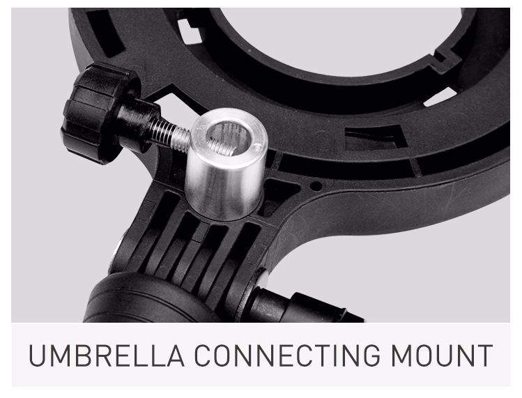 The Bowens mount adaptor for Forza 60 also includes an umbrella rod mount to use umbrella reflectors and diffusers.