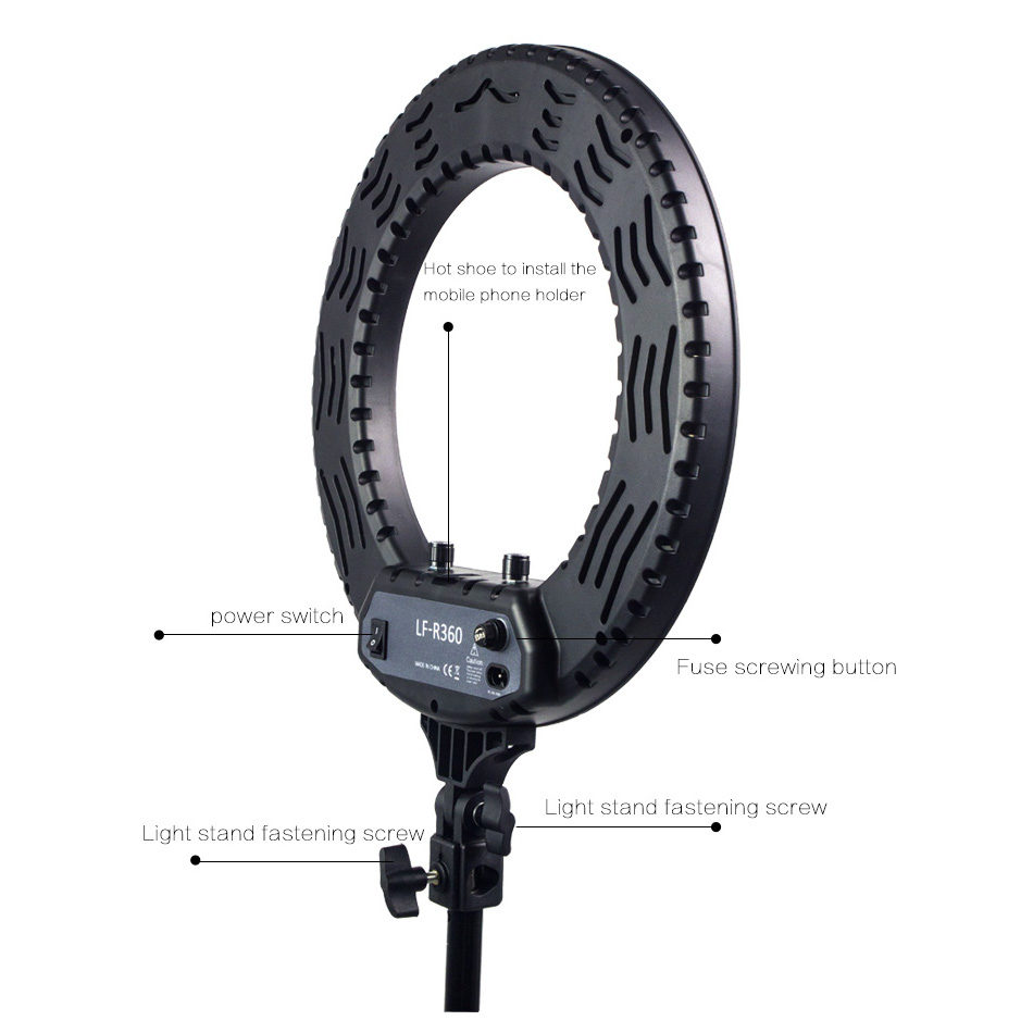 The Round Vlogger ring lamp comes with a smartphone holder, so you can take the perfect selfie in no time. The lamp is also easy to attach to a lamp stand using the 5/8 "threaded connection.
