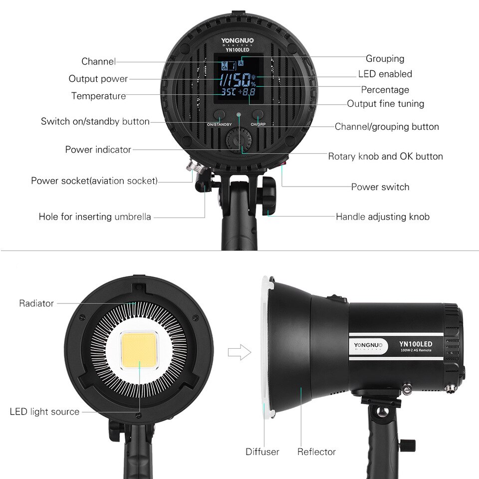 Compact and lightweight structural design.1x Yongnuo YN100 LED