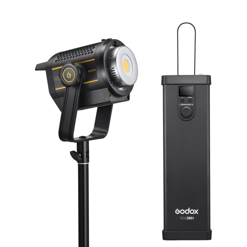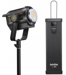 Useful for lighting your next interview, product, or portrait shoot, this VL200II Daylight LED Monolight from Godox offers power, light intensity, and modifier compatibility options for quality image creation. The 215W light has a controller/power supply that is separate from the fixture to facilitate convection cooling of the LEDs and allow easy placement overhead, especially since the controller has a V-mount battery plate.