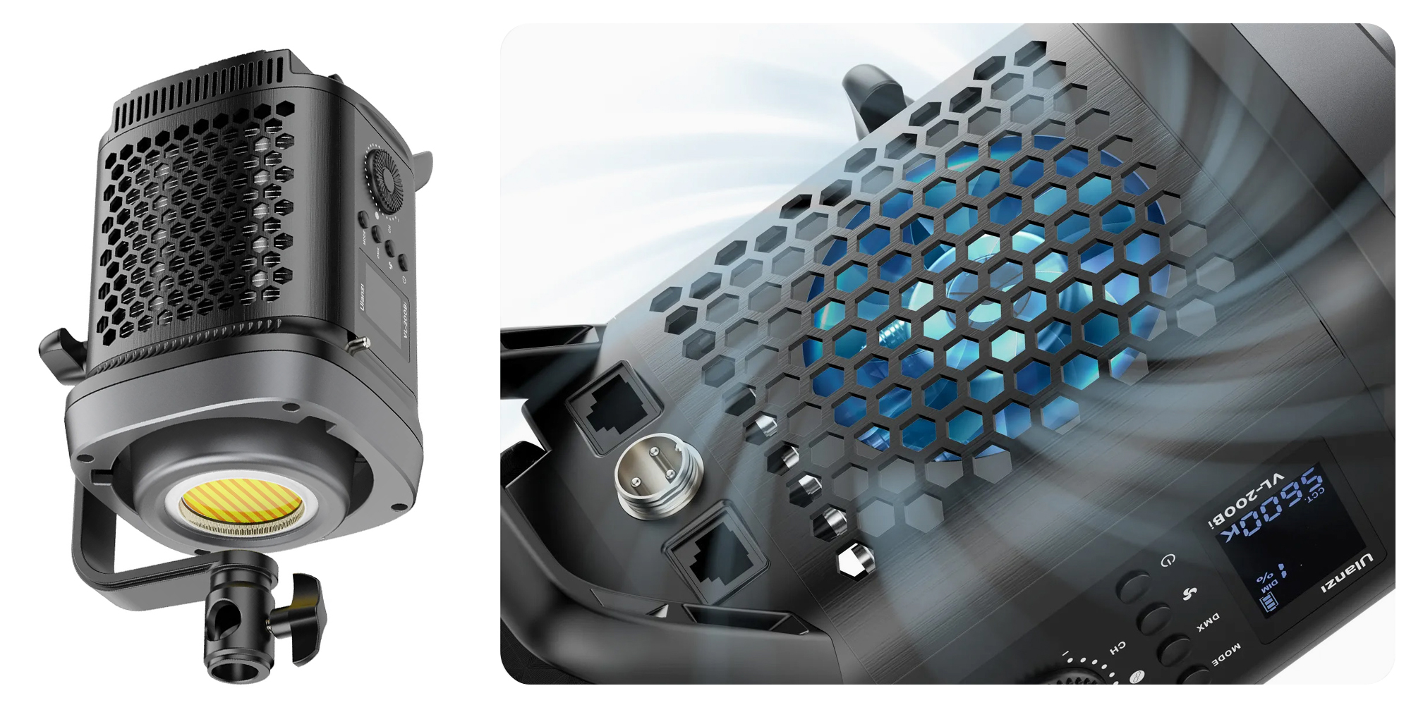 The Ulanzi 200W LED lamp has been designed for users who appreciate ease of use and advanced features. Featuring an easy-to-read LCD display, infinite dial adjustment and a 360° rotatable mount, the lamp is extremely simple and intuitive to use. The unit is also compatible with Bowens mounts, allowing a wide range of accessories and light modifiers to be used.