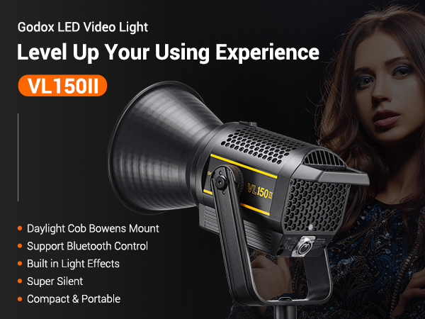 The all-new Godox VL150II LED Video Light has inherited all the extraordinary features of the VL series. With features of the VL series, such as stable and powerful output, accurate color reproduction, excellent cooling system, and so on.