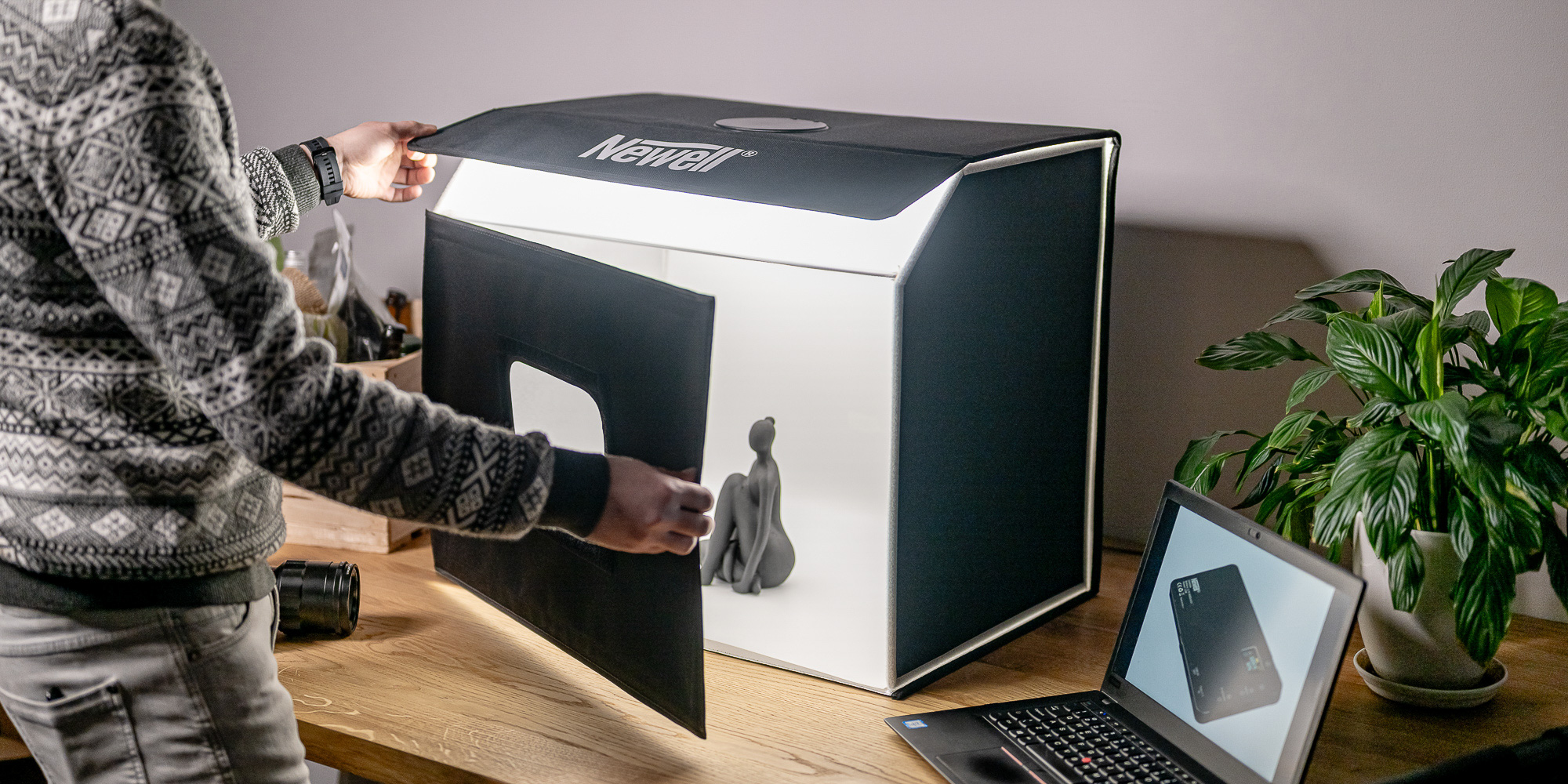 The Newell M60 is a compact shadowless tent that allows you to create a professional photographic studio in almost any conditions. Thanks to its clever design and use of LED technology, it provides ideal conditions for photographing products – without unsightly shadows, glare or uneven lighting. Simply unfold the frame, select a suitable background and adjust the colour temperature and light intensity using the supplied remote control. Whether you’re photographing fine jewellery, fashion accessories, collectible figurines or electronic items, the M60 allows you to capture every detail in the best light, saving you valuable time and money that would have been spent on hiring a studio or photographer.