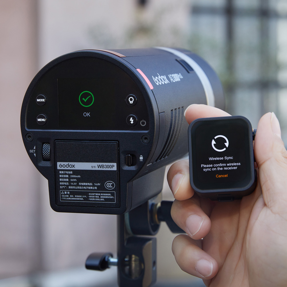 X3 one-tap sync pairs AD300Proll instantly, without the need to set a group or channel. This capability is made possible by the built-in Godox 2.4 GHz Wireless X system. The AD300OProll is also compatible with other X-series transmitters (XPro series, X2T, X1) for broader control. For wired or alternative workflows, a 3.5 mm sync port is provided, and the USB-C port supports the optional FR433 33 MHz receiver.