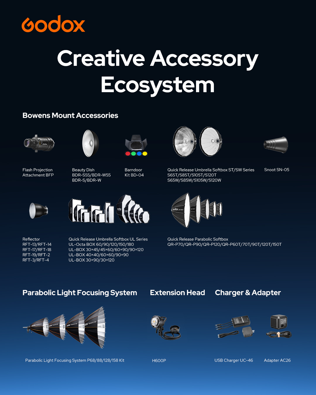 The native Bowens mount is compatible with a wide range of light-shaping tools (softboxes, beauty dishes, grids, snoots, etc.), giving photographers instant access to an extensive professional modifier system.