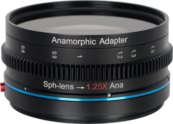 Screw the Sirui 1.25x adapter on to the Sirui 1.6x anamorphic lens to achieve a 2x squeeze.