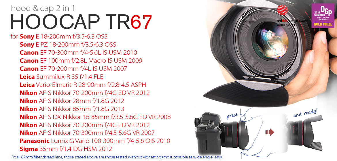 Front Lens Cap»Hoocap»HOOCAP TR67 / 67mm for Lumix 100-300 , Sigma 35/1,4 , Nikon 70-200, 70-300, 16-85, 85 / Sony 18-200 / Canon 18-200, 70-200, 70-300,100mm / leica 35/1,4»(new)
