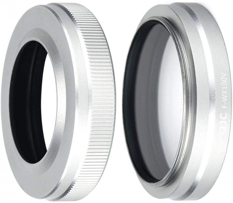 The F-WX100V Silver is specially designed for Fujifilm X100 Series. It contains a metal lens hood and a L39 multi-coated UV filter. The lens hood and filter are compatible with Fujifilm X100 series original lens caps.
