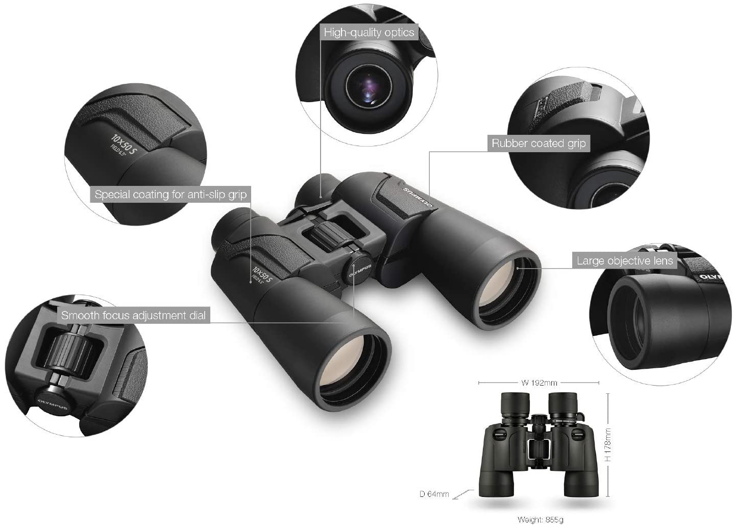 Olympus Standard binoculars are the perfect companion for observing nature, sport, wildlife and birdwatching. A wide field of view makes locating a subject quicker and easier, particularly when panning a wide area or tracking fast-moving subjects, such as birds, animals and action sports. The large objective lens diameter offers bright high-resolution images even in low light. Advanced optical technologies including aspherical lenses plus coated lenses and prisms ensure a high level of optical performance by reducing image distortion and chromatic aberration for sharp images and a clear field of view with suberb transmittance. A focusing distance as close as 6m allows you to follow animals almost motionless as they approach. With a durable, high-quality finish resisting any nature conditions and a rubber coated grip ensuring a safe hold these binoculars are well equipped for outdoor use. Maximum comfort, functionality and portability is granted thanks to the slim, simple design and ergonomic controls. All elements have been arranged precisely for a compact size, resulting in a sharp impression and a lightweight body.