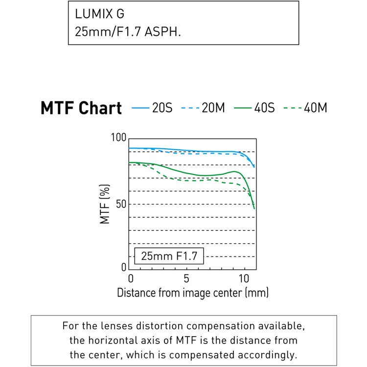 The new lens system is comprised of 8 elements in 7 groups featuring two aspherical lenses and an Ultra-High Refractive Index (UHR) Lens. Designed and developed focusing on the low-frequency contrast,  the LUMIX G 25mm / F1.7 ASPH. assures stunning clarity for sharp crisp images. It features uniform descriptiveness from center to edges while suppressing spherical aberration and distortion. It incorporates a superior inner focus system which enables excellent resolution and contrast from closest focusing distance to infinity. The inclusion of stepping motor makes the focusing action smooth and silent for use in both photo and video recording to be classified in LUMIX HD Lens. When mounted on the Digital Single Lens Mirrorless (DSLM) cameras of LUMIX G, users can take advantage of the high-speed, high-precision Contrast AF system with a 240 fps digital signal exchange.