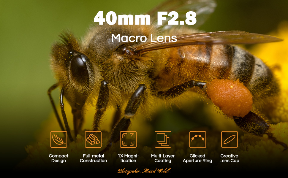 Designed for close distances, the 40mm f/2.8 Macro from TTArtisan is a 80mm-equivalent macro prime offering a 1:1 life-size maximum magnification along with a 6.7" minimum focusing distance. Benefitting both close-up shooting as well as working at greater distances, the optical design uses 8 elements in 7 groups to maintain consistent image quality and sharpness throughout the focusing range. The 40mm f/2.8 has a manual focus design and an 11-blade diaphragm that contributes to a smooth bokeh quality, making it an excellent portrait lens.