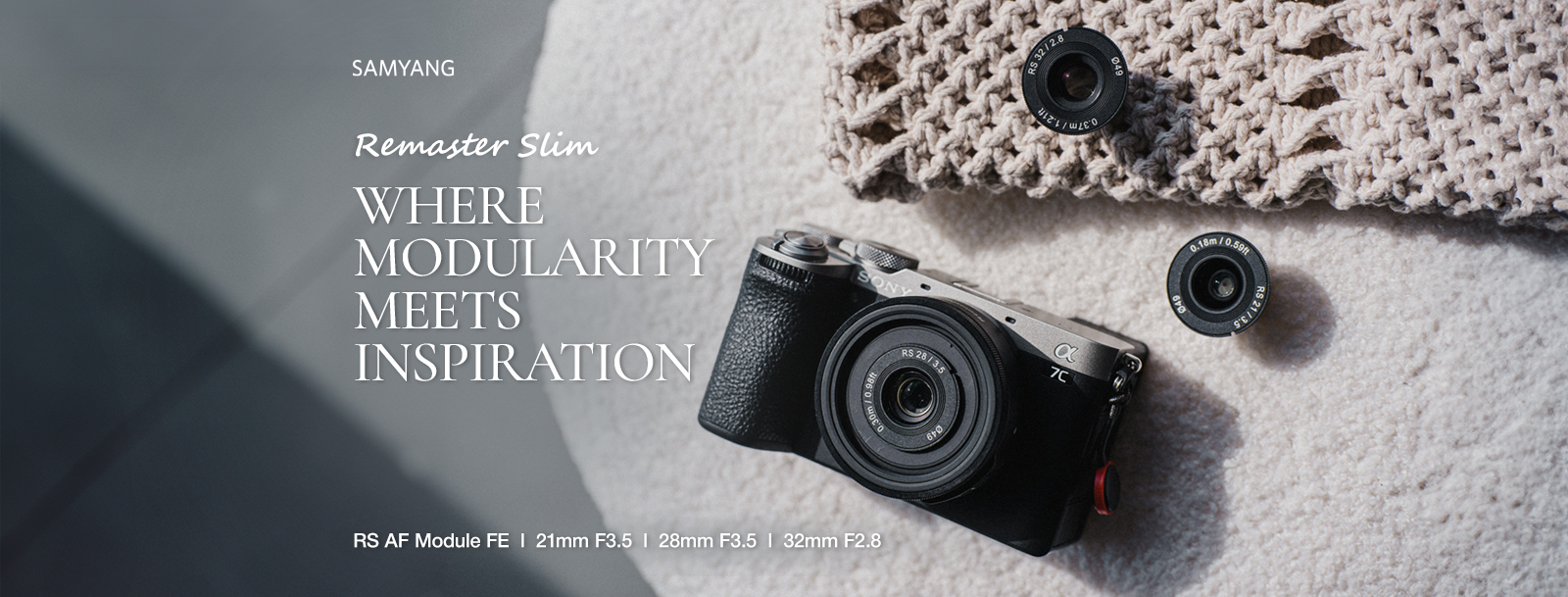 Modulāra konstrukcija: Remaster Slim apvieno radošumu un funkcionalitāti ar trim maināmiem fokusa attālumiem: 21 mm F3,5, 28 mm F3,5 un 32 mm F2,8. Šī sistēma, kas ir saderīga ar pilnkadra bezspoguļa kamerām Sony E-mount, nodrošina iespaidīgu attēla kvalitāti un piedāvā daudzpusīgu fotografēšanas pieredzi visiem fotografēšanas veidiem.