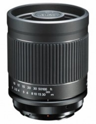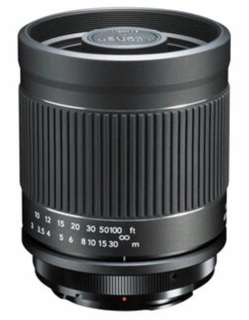 Manual focus catadioptric optical design telephoto lens with fixed f/8 aperture, which is compatible with select camera focus peaking systems and in-body multi-axis advanced image stabilization systems.
