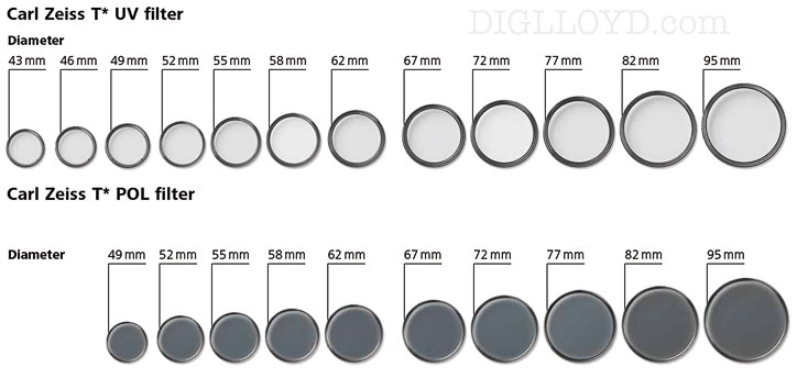 Crystal clear: the UV filters featuring the T* anti-reflective coating from Carl Zeiss provide optimal protection for the front element of your lens. They also ensure absolute brilliance without altering the color rendition or exposure time.