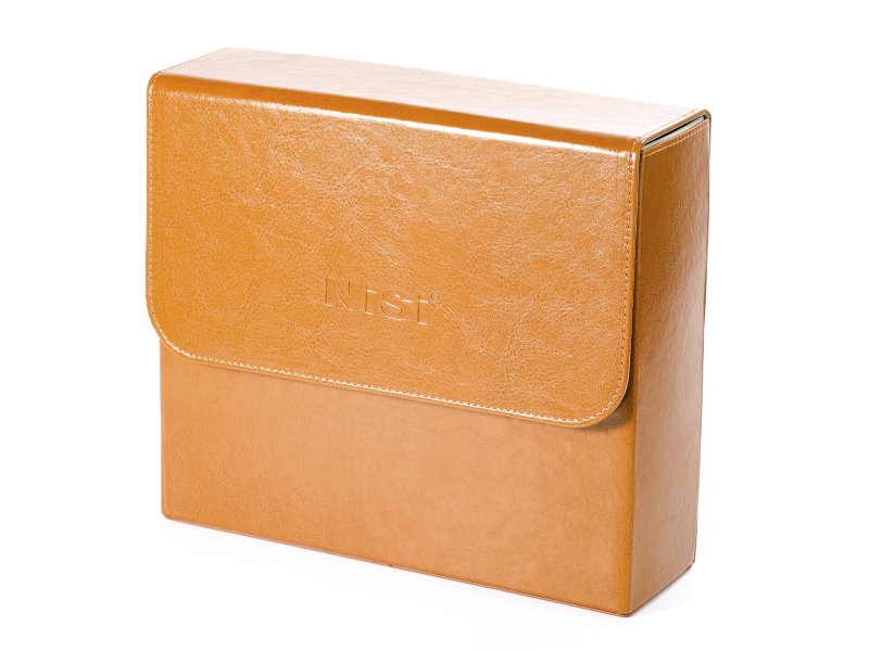 Soft padded luxurious brown leather case. Fits seven 4x5.65" filters with labels to show different types.