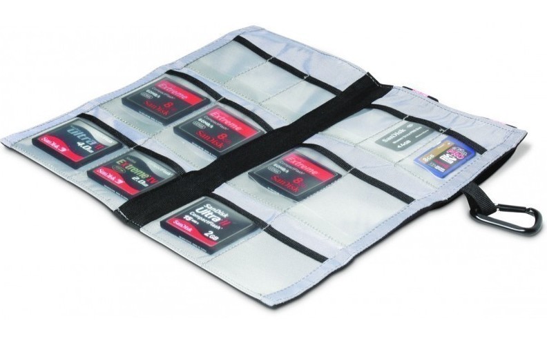 This simple, stylish and compact wallet is the perfect solution for storing and organizing a multitude of media cards. The pouch features 14 separate compartments for different types of memory cards.