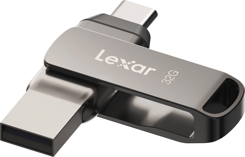 Lexar JumpDrive Dual Drive D400 USB 3.1 Type-CTM ir 2-in-1 zibatmiņas zibatmiņas disks, kas ļauj ērti pārsūtīt saturu starp USB Type-CTM un A tipa ierīcēm. Šim diskdziņam ir stilīgs metāla korpuss un grozāms dizains papildu aizsardzībai, un tas ir tikpat izturīgs, cik ātrs, ar datu pārsūtīšanas ātrumu līdz 130 MB/s.
