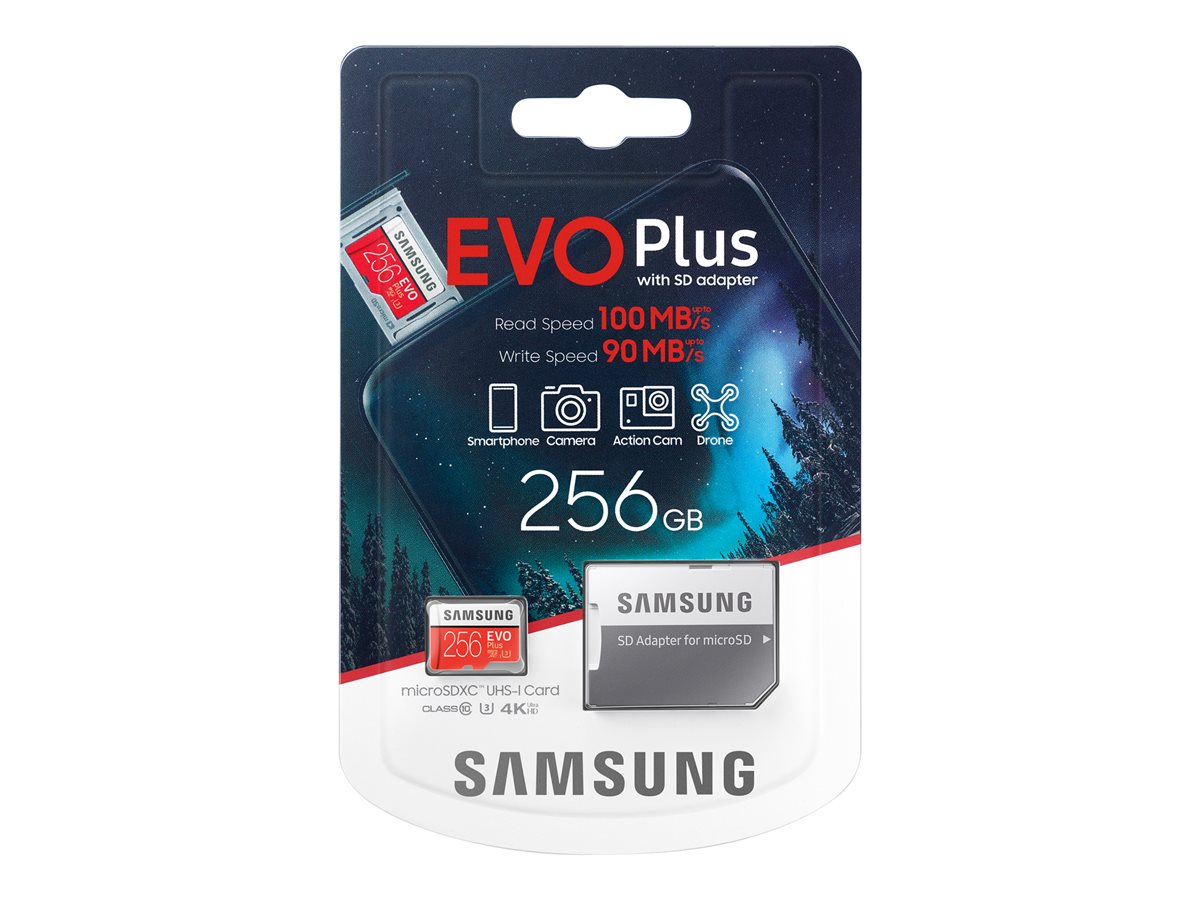 MicroSD cards»SAMSUNG»Samsung EVO PLUS UHS-I 256 GB, R100/W90 , MicroSDXC, U3 , class 10, SD adapter»(new)