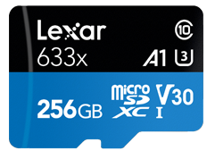 microSD cards»LEXAR»LEXAR microSD 256 GB. 633X MICROSDXC R95/W45 mB/s A1 , C10 , V30 , UHS-I , U3»(new)