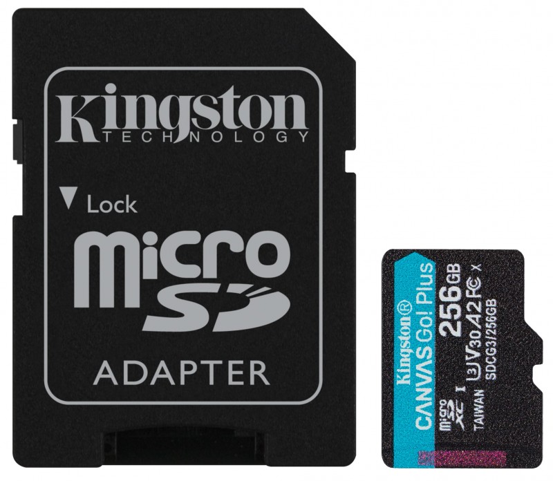 microSD cards»KINGSTON»Kingston Canvas GO! PLUS microSD card 256 Gb R170/W90 MB/s V30 UHS-II U3 + SD adapter»(new)